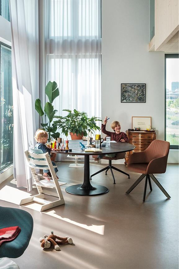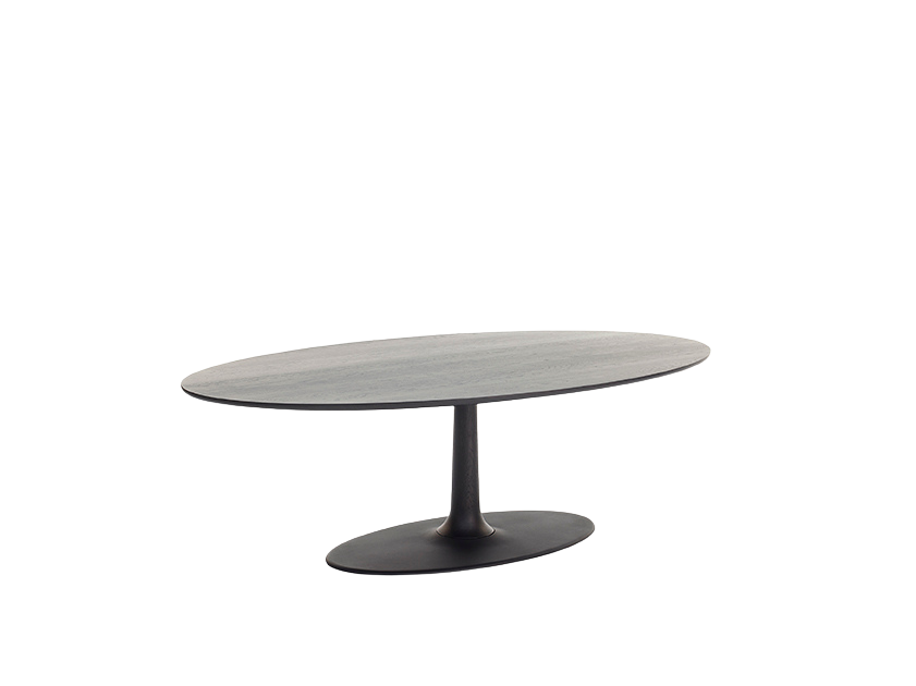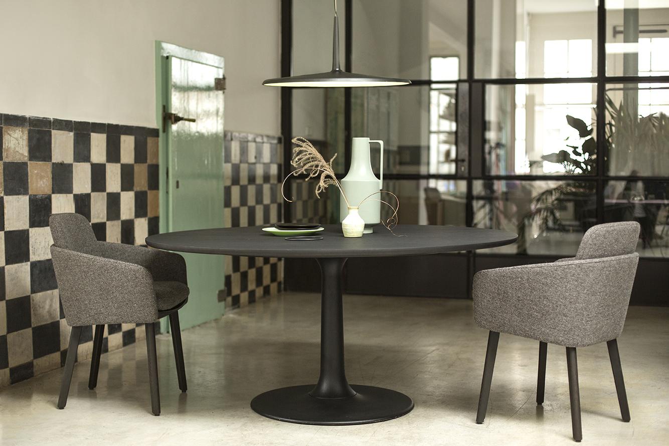 De Joist Ellipse tafel is een archetypisch ontwerp, gekenmerkt door zijn ovale vorm en centrale kolom. Deze centrale kolom zorgt voor extra beenruimte en bewegingsvrijheid, waardoor de tafel comfortabel en praktisch in gebruik is. De ovale vorm bevordert sociale interactie, omdat iedereen rondom de tafel elkaar gemakkelijk kan aankijken. De kolom is vervaardigd uit gegoten aluminium met smalle ribben, waarbij de ambachtelijke gieterij de grenzen van het zandgieten heeft verkend. Het aluminium wordt geleverd door een Nederlandse partner, wat bijdraagt aan de lokale en duurzame productie van de tafel. Joist is ontworpen volgens het “design to disassembly” principe, wat betekent dat de tafel volledig demontabel is en alle onderdelen recyclebaar zijn. Zowel het massief houten blad als de kolom kunnen na verloop van tijd worden gerefurbished, wat de levensduur van de tafel verlengt. Het blad is beschikbaar in massief eiken, noten of gerookt eiken. Voor de kolom kunt u kiezen uit epoxy fine texture op aluminium (Joist 1) of massief eiken, noten, of gerookt eiken (Joist 2). De voet van de tafel is uitgevoerd in epoxy fine texture op aluminium, wat zorgt voor een strakke en duurzame afwerking. De vanaf prijs is gebaseerd op de tafel uitgevoerd in massief eiken.