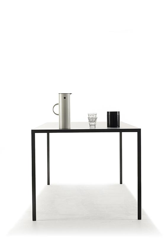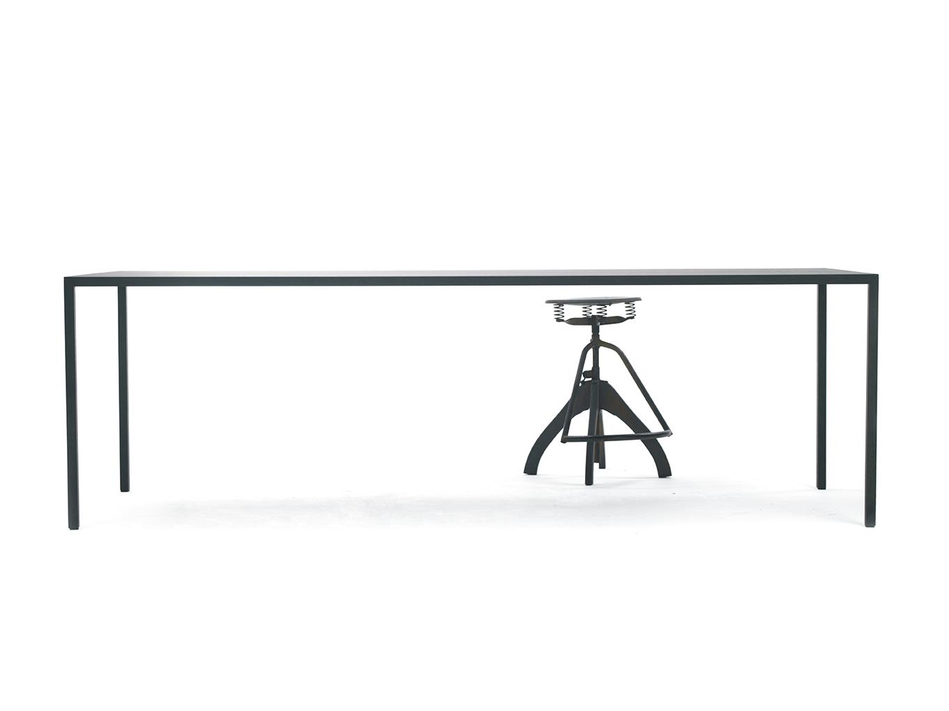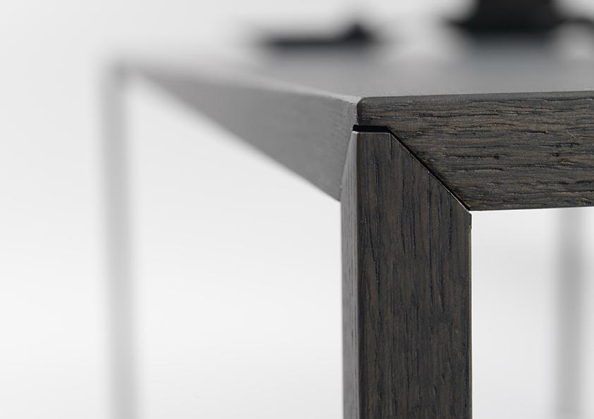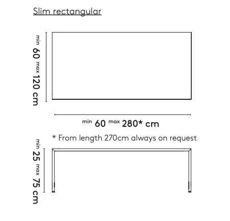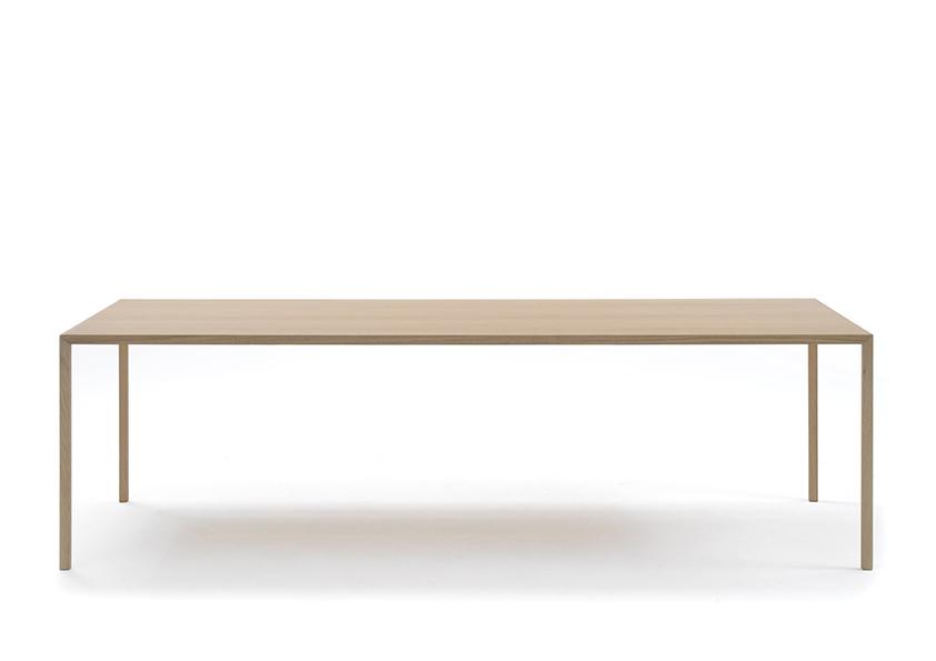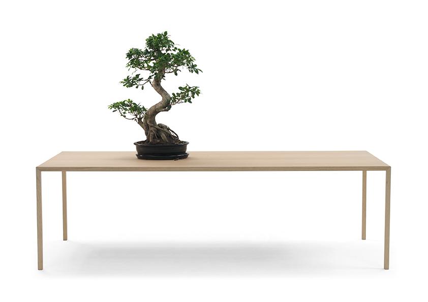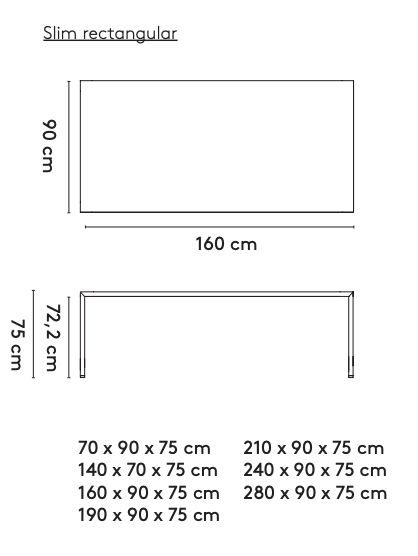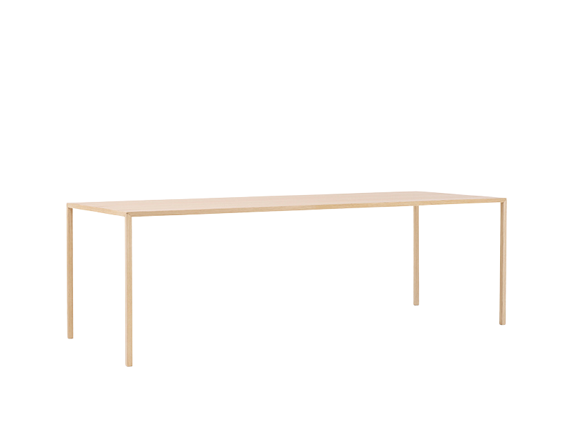 Deze slanke, maar uiterst stabiele tafel dankt zijn ontwerp aan een innovatieve staal-sandwich constructie, afgewerkt met een laag hout. Bertjan Pot merkte hierover op: “Hoewel sommigen de Slim Table misschien als nep of onauthentiek zouden beschouwen, is hij juist zeer oprecht en puur. Elk materiaal is op de meest eerlijke manier gebruikt: metaal voor de stevige constructie en hout voor de tactiele ervaring en esthetische uitstraling. Zonder innovatie loopt minimalisme dood.” De Slim is verkrijgbaar in diverse hoogwaardige materialen. Het tafelblad kan worden uitgevoerd in eiken of noten fineer, gerookt eiken (Duramas), kleurlak op essen fineer, Fenix® HPL, of linoleum uit de Forbo Furniture collectie. Voor het onderstel zijn de opties eveneens gevarieerd: eiken of noten fineer, gerookt eiken fineer, en kleurlak op essen fineer. Deze materialen bieden niet alleen esthetische veelzijdigheid, maar zorgen ook voor een duurzame en tactiele ervaring. De vanaf prijs is gebasseerd op de tafel uitgevoerd in fineer eiken.