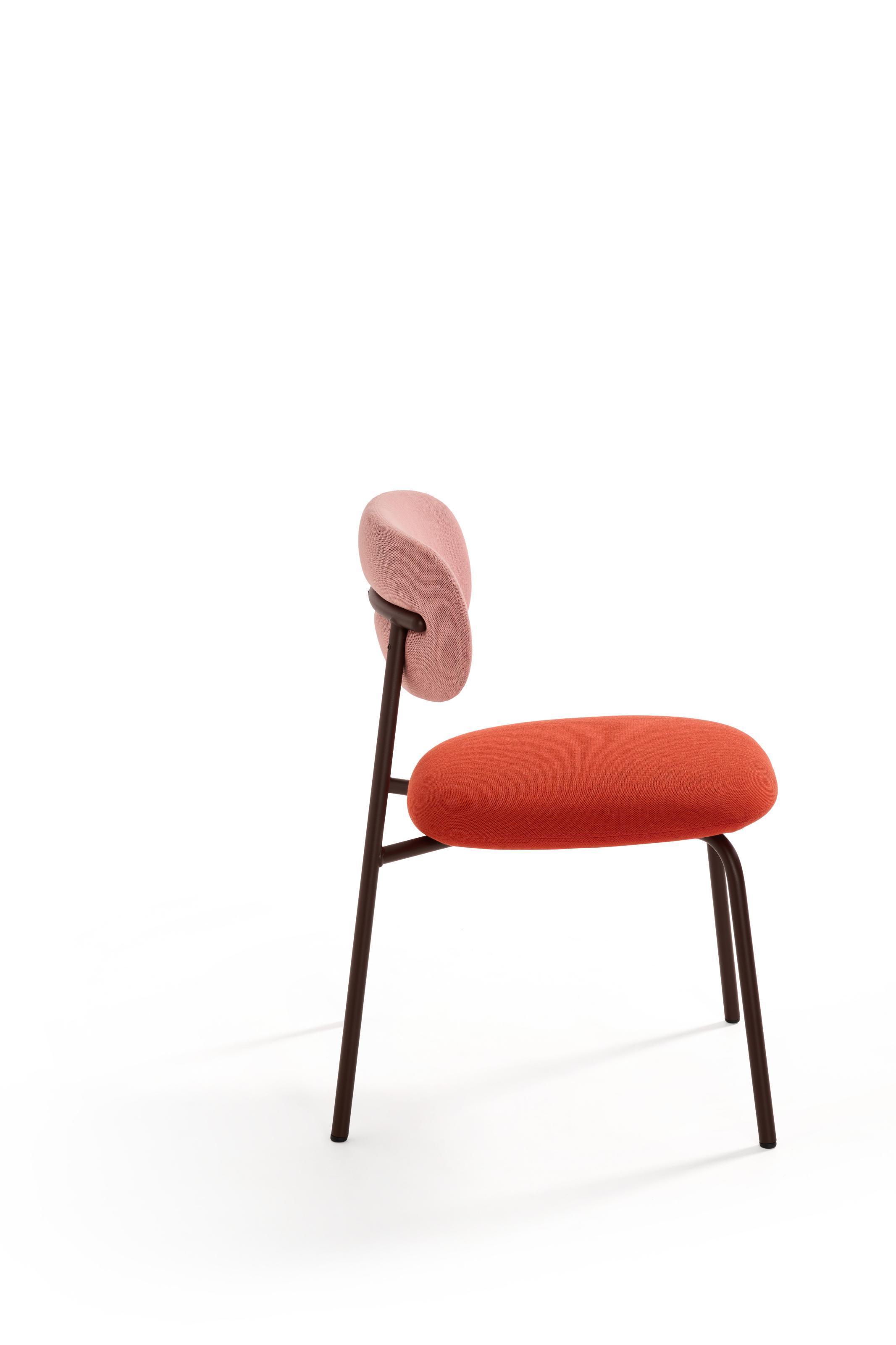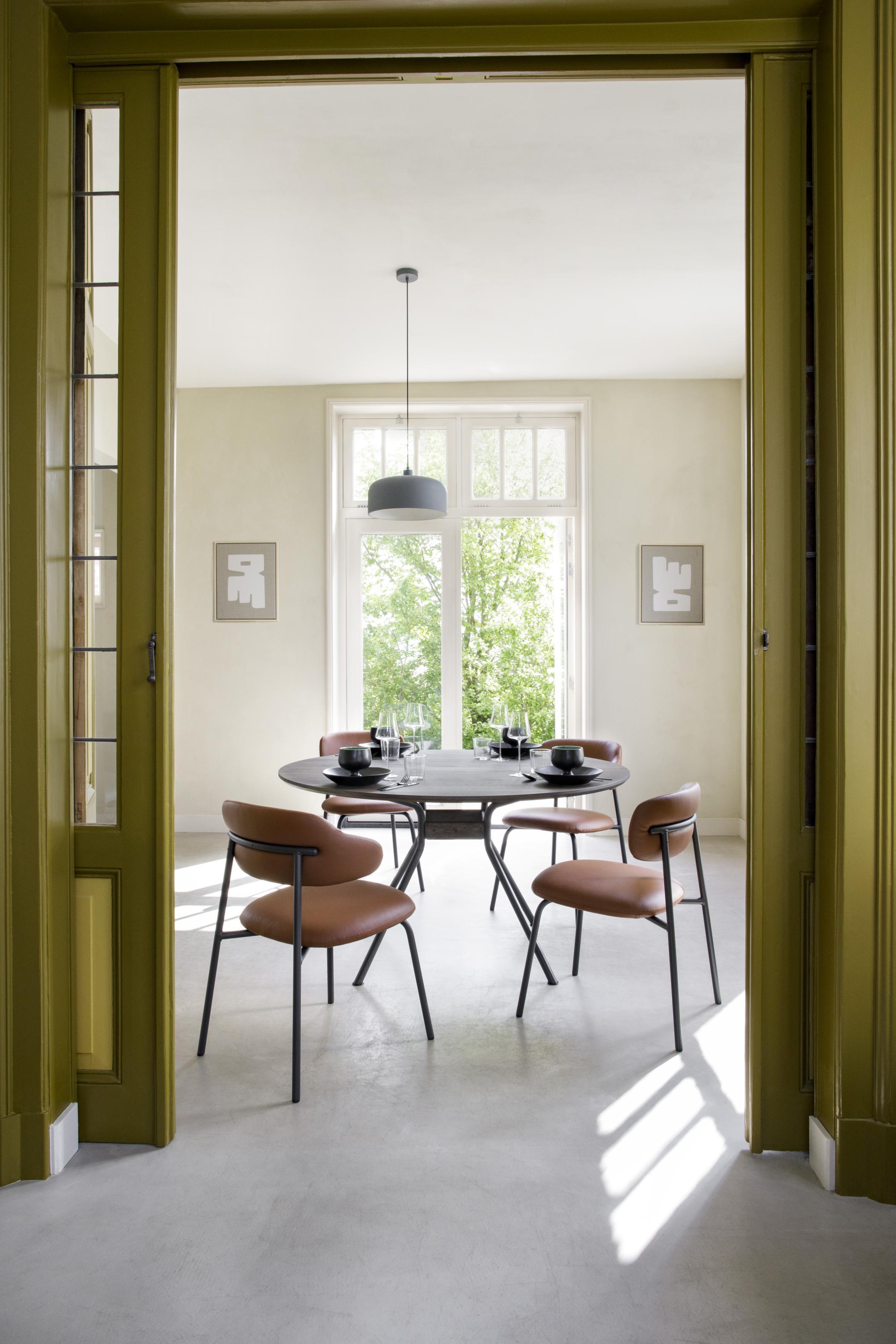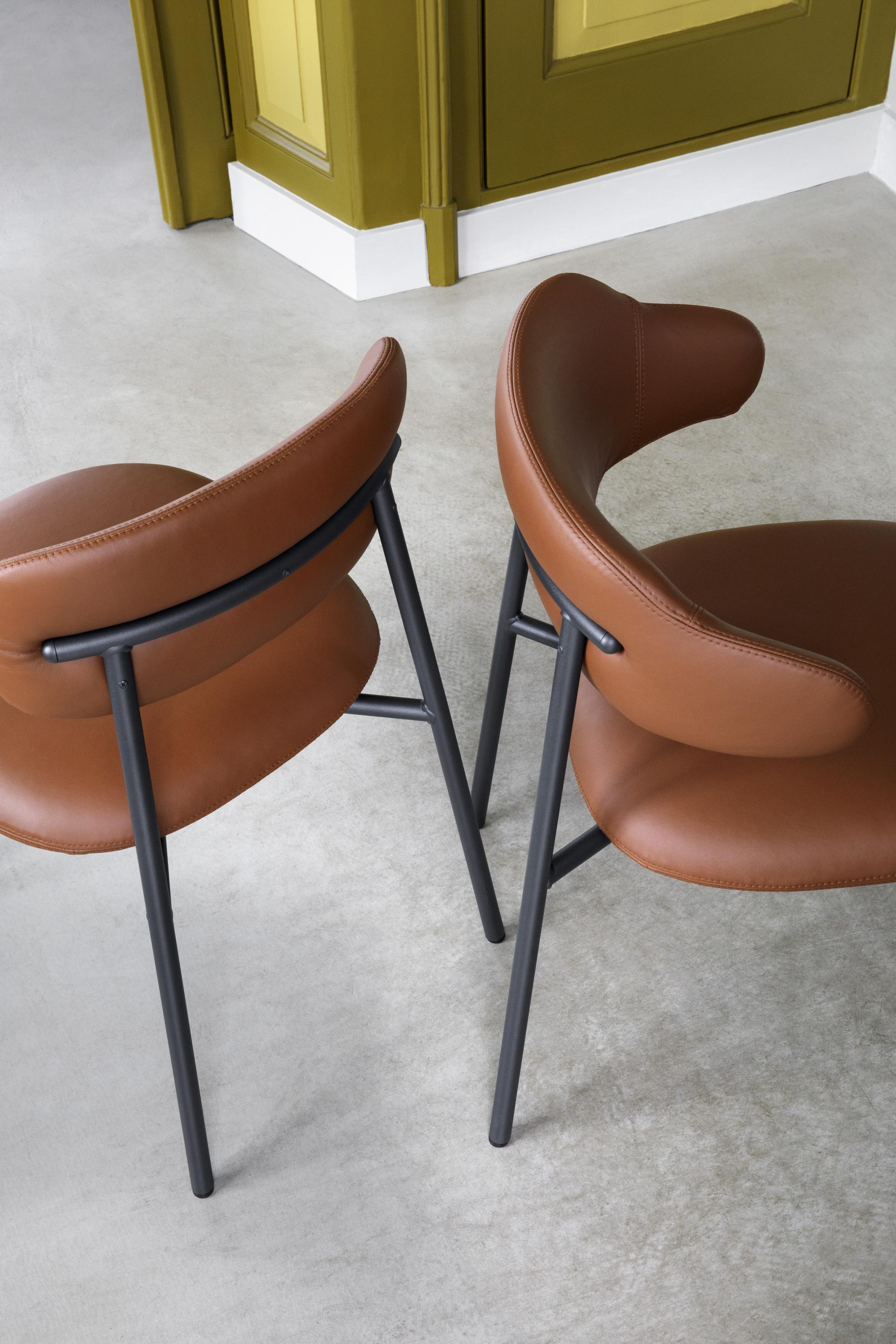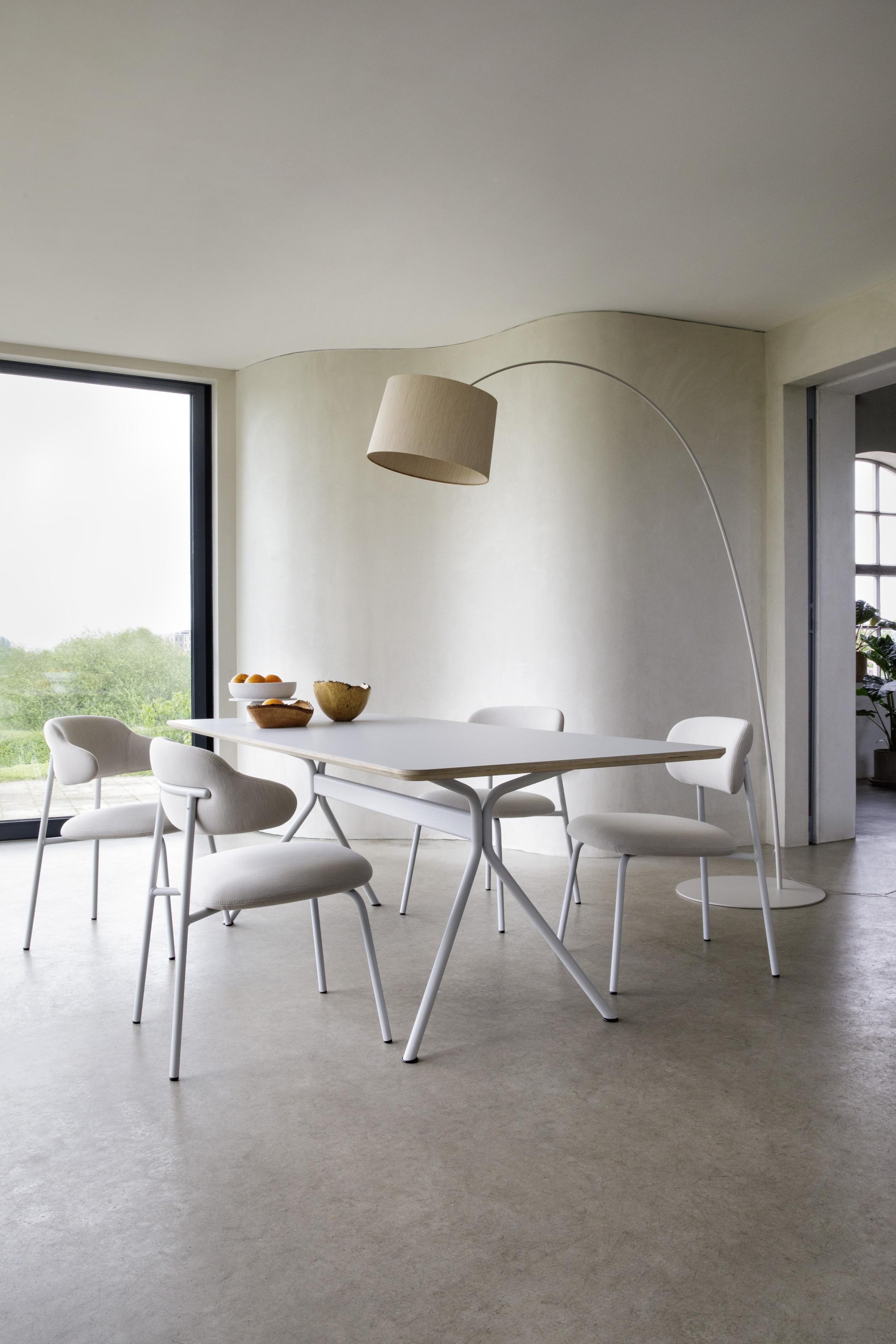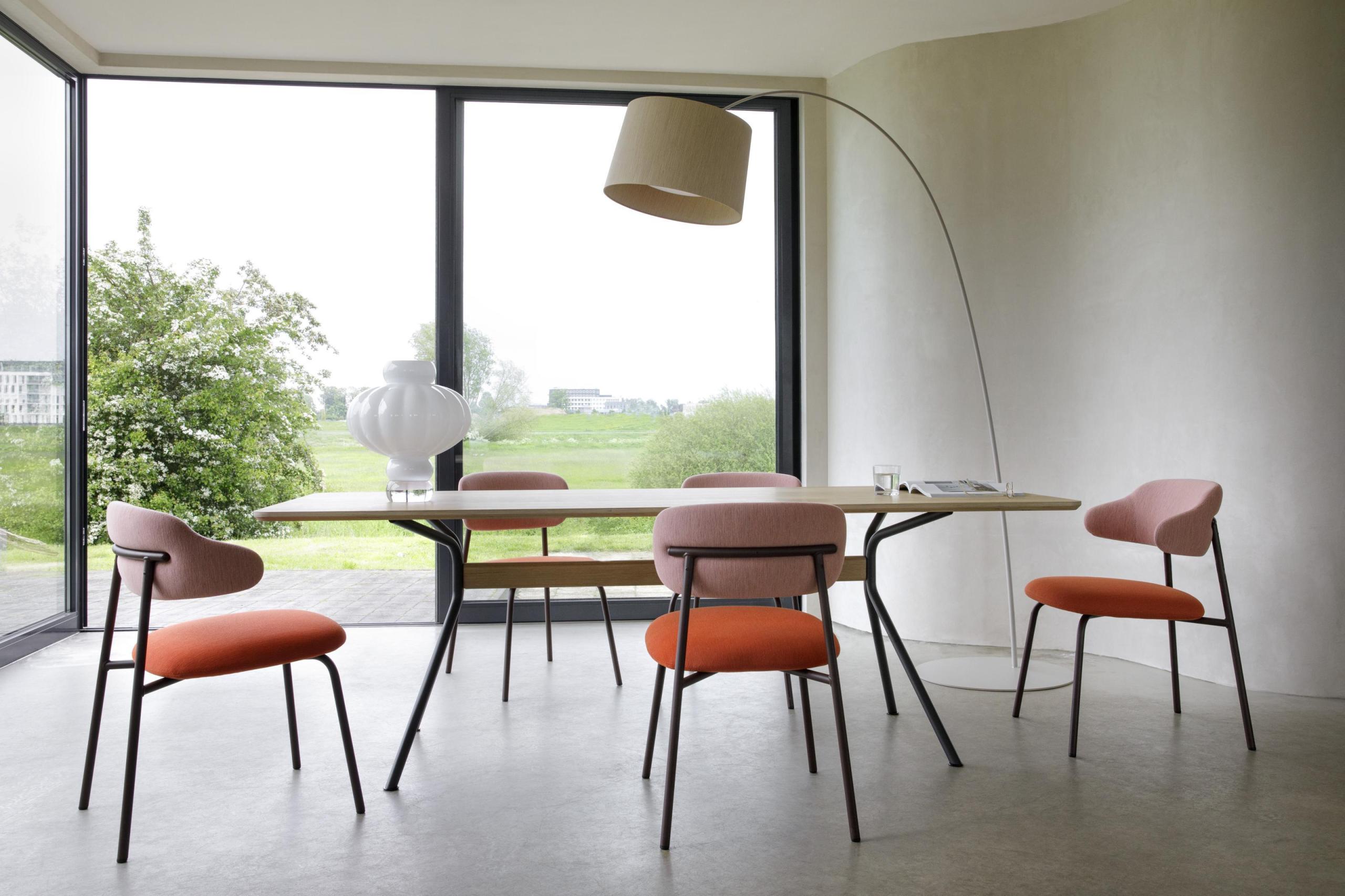 Aloa, ontworpen door Khodi Feiz, brengt eenvoud in een nieuw perspectief. Het is een lichte en elegante collectie van stoelen en barkrukken met een gestoffeerde zitting en rugleuning, ondersteund door een grafisch metalen frame. Dankzij het hoge comfort is Aloa perfect geschikt voor gebruik aan de eettafel, in restaurants of in vergaderruimtes op kantoor. De inspiratie voor Aloa komt voort uit het samenspel van zachte en harde materialen. De metalen rugleuning wordt in het zachte, ondersteunende kussen gedrukt, wat een intrigerend beeld oplevert van kracht en comfort, aldus ontwerper Khodi Feiz. Het stalen gedeelte omarmt het zachte kussen, en de stoel biedt op zijn beurt ondersteuning aan de gebruiker. Aloa bestaat uit een minimaal aantal onderdelen en straalt lichtheid en tijdloze elegantie uit. De combinatie van stoffering en frame maakt het mogelijk om de stoel aan te passen aan verschillende interieurstijlen, dankzij de ruime keuze aan stoffen en poedercoating afwerkingen. Dit maakt Aloa perfect voor personalisatie. Aloa biedt uitstekend zitcomfort door de combinatie van hoogwaardig schuim en een perfect ondersteunende rugleuning. De collectie omvat een stoel, een stoel met armleuningen en drie barkrukken met vaste zithoogtes van 60, 70 of 80 cm. De standaard zithoogte is 48 cm, met een optionele variant van 49,5 cm. Wat betreft de bekleding is er keuze uit een breed scala aan kwaliteitsstoffen en leer in diverse kleuren. Ook is duo-stoffering mogelijk, waarbij het zitvlak en de rugleuning of de binnen- en buitenzijde van kleur kunnen verschillen. Het metalen frame en onderstel worden afgewerkt met een poedercoating, wat de stoel niet alleen stevig maar ook visueel aantrekkelijk maakt. De vanaf prijs is gebaseerd op de stoel uitgevoerd in de prijsklasse AA zonder armen.