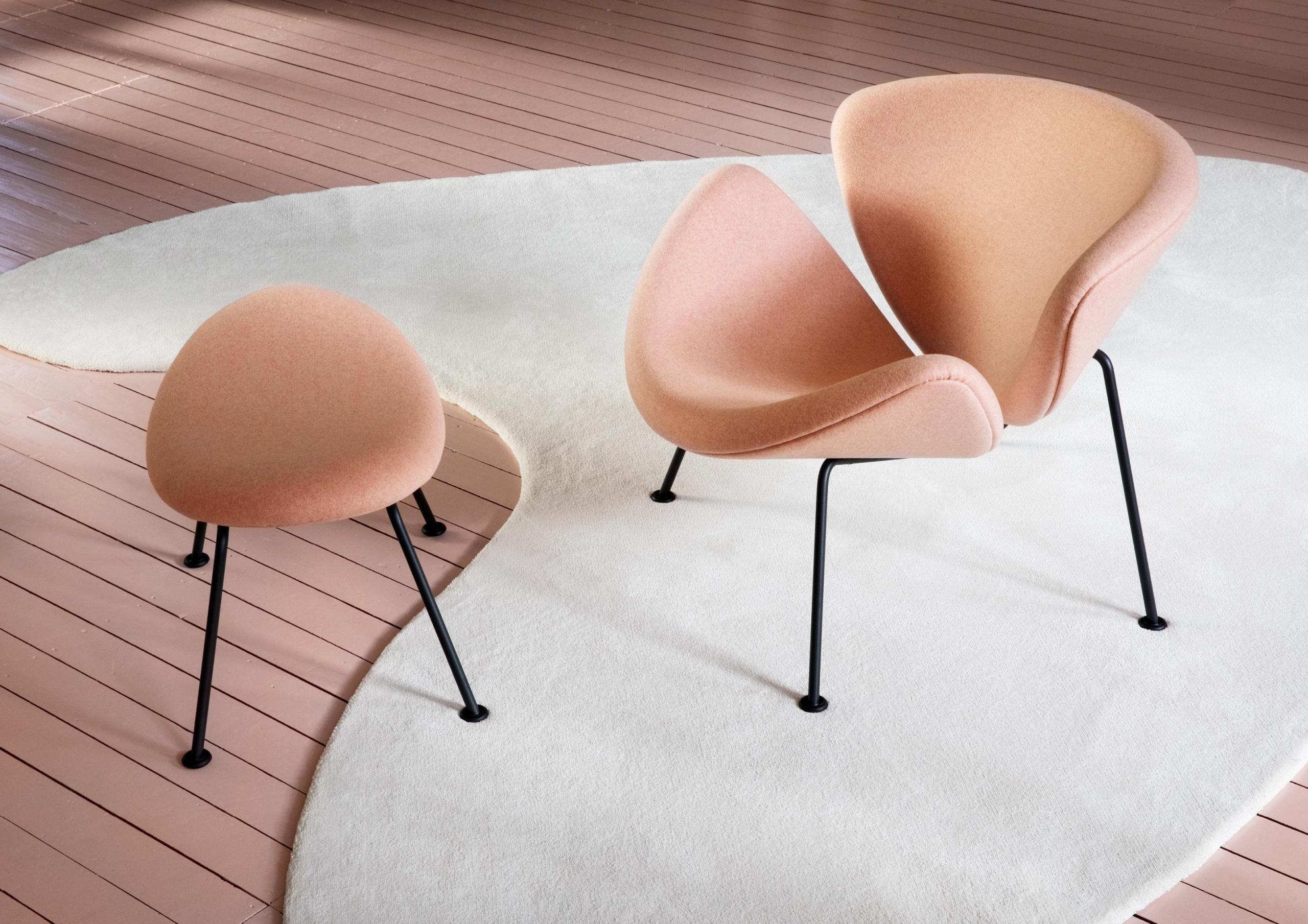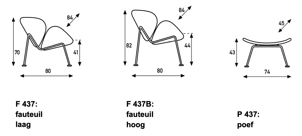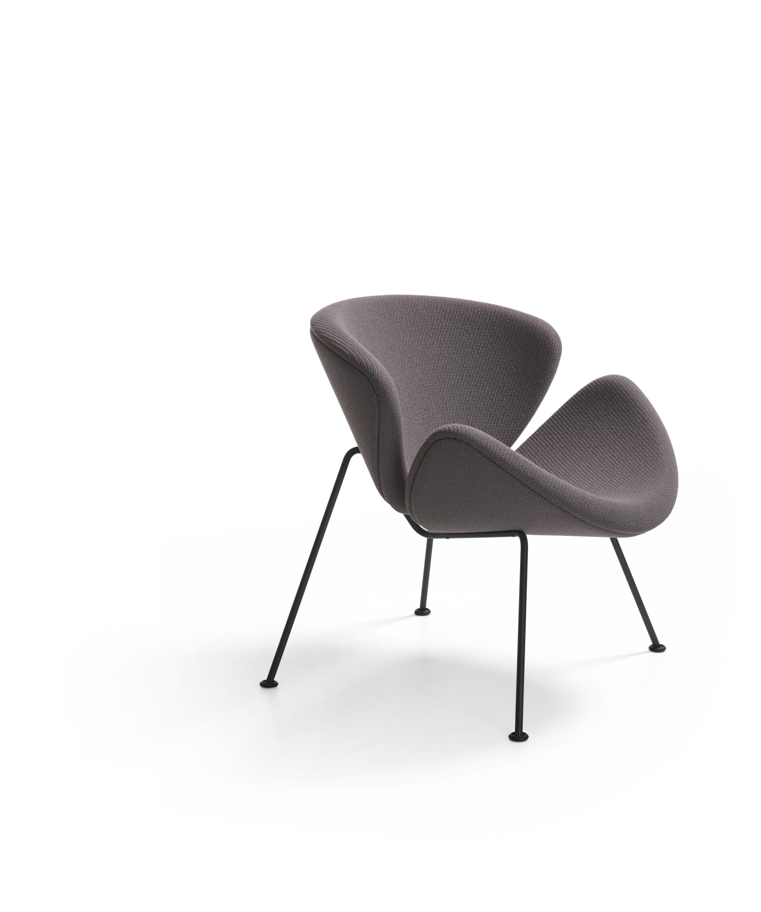 De Orange Slice® fauteuil, ontworpen door Pierre Paulin, is een van de meest geliefde designfauteuils ter wereld, en met goede reden. Deze iconische fauteuil maakt elke ruimte opener, ruimtelijker en vrolijker. Het opvallendste kenmerk van de Orange Slice® is dat de twee identieke schelpen van de stoel lijken ‘om te krullen’. Bij nadere beschouwing lijkt het net alsof de stoel naar je lacht. Verkrijgbaar in een breed scala aan prachtige kleuren, zowel in stof als leer, is de Orange Slice® een echte blikvanger in elke woonkamer of lobby. In een groepje van meerdere Orange Slice® fauteuils lijkt de vorm van de stoel vanuit elke hoek te veranderen. De fauteuil is verkrijgbaar in twee zithoogtes. In 1952 maakte Pierre Paulin kennis met de techniek om multiplex te buigen, wat de basis vormde voor de F437 fauteuil. Al snel kreeg de stoel de bijnaam ‘Orange Slice’ vanwege de gelijkenis met sinaasappelschijven. Sinds de introductie in 1960 is de Orange Slice® een veelgeprezen Artifort-klassieker en blijft hij onverminderd populair. De Orange Slice® heeft een sculpturale vormtaal en biedt een uitgebreide keuze aan bekleding in diverse stoffen en leer. Het stalen 4-poot onderstel is afgewerkt in poedercoat of chroom. De fauteuil is beschikbaar in twee zithoogtes: de originele (F437) en een actievere zitversie (F437B). Voor extra comfort kan de Orange Slice® gecombineerd worden met een bijpassende voetenbank, de P437. De vanaf prijs is gebaseerd op de fauteuil uitgevoerd in de prijsklasse AA met een onderstel in een standaard poedercoatkleur.