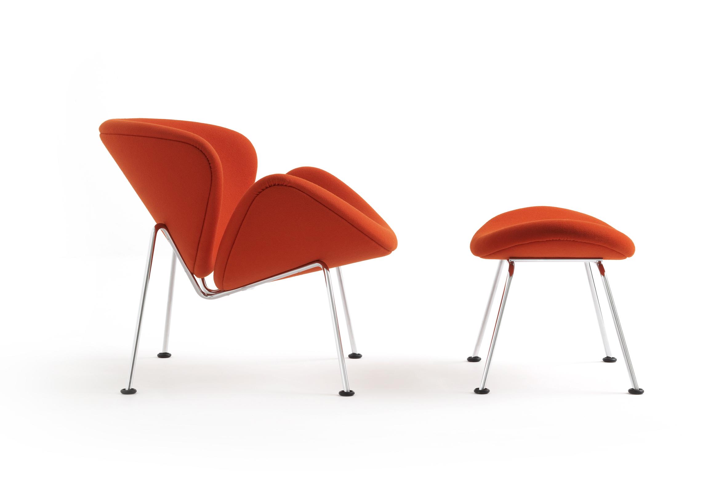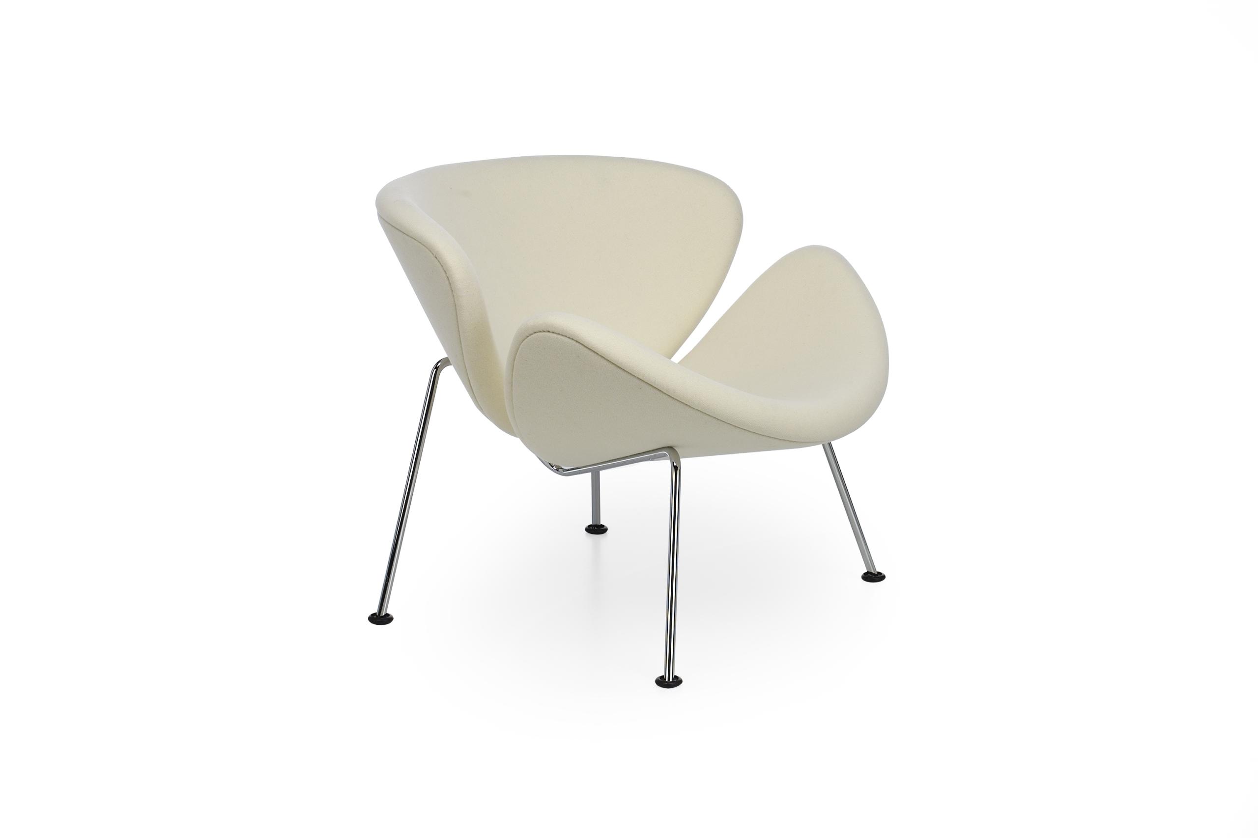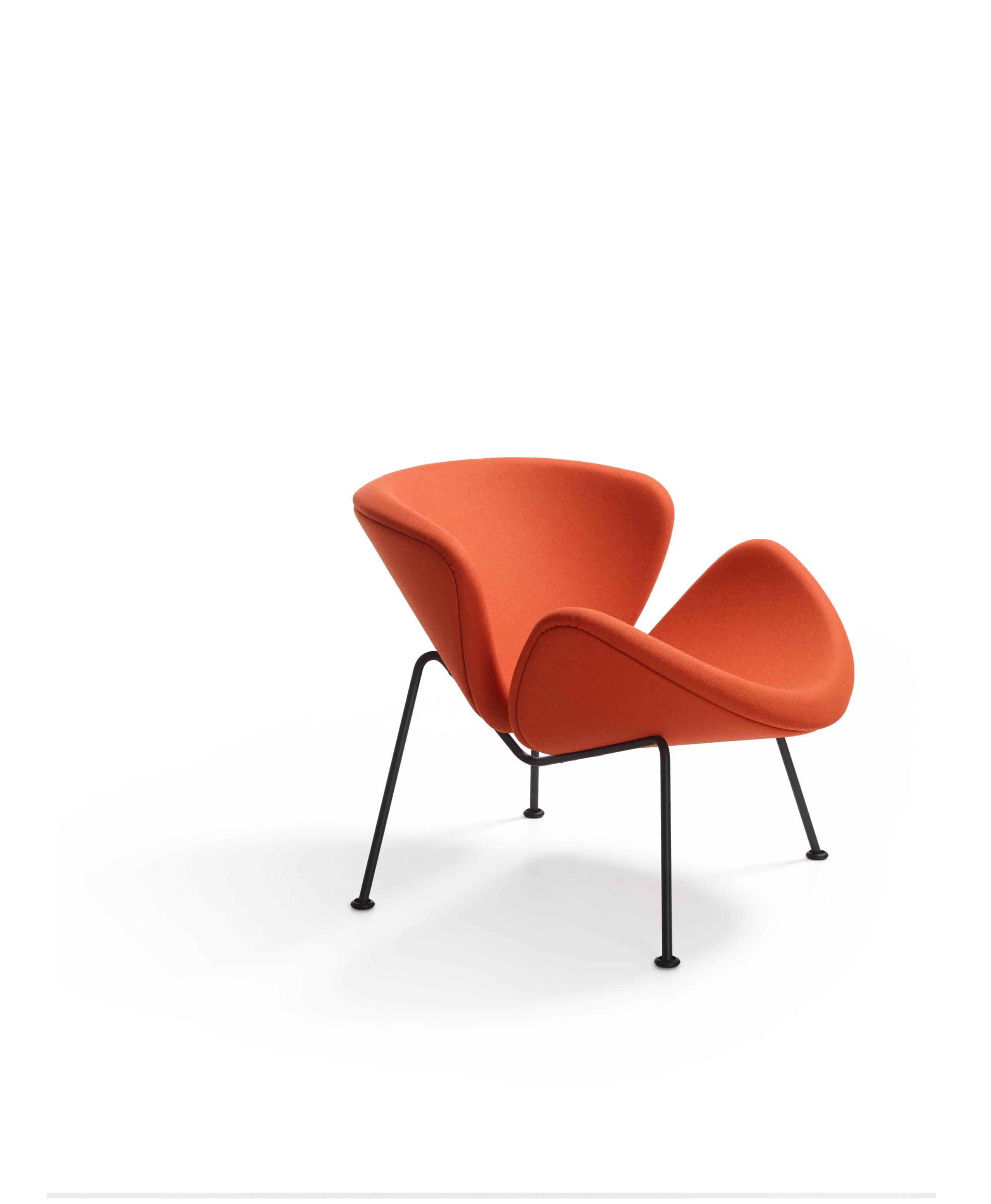 De Orange Slice® fauteuil, ontworpen door Pierre Paulin, is een van de meest geliefde designfauteuils ter wereld, en met goede reden. Deze iconische fauteuil maakt elke ruimte opener, ruimtelijker en vrolijker. Het opvallendste kenmerk van de Orange Slice® is dat de twee identieke schelpen van de stoel lijken ‘om te krullen’. Bij nadere beschouwing lijkt het net alsof de stoel naar je lacht. Verkrijgbaar in een breed scala aan prachtige kleuren, zowel in stof als leer, is de Orange Slice® een echte blikvanger in elke woonkamer of lobby. In een groepje van meerdere Orange Slice® fauteuils lijkt de vorm van de stoel vanuit elke hoek te veranderen. De fauteuil is verkrijgbaar in twee zithoogtes. In 1952 maakte Pierre Paulin kennis met de techniek om multiplex te buigen, wat de basis vormde voor de F437 fauteuil. Al snel kreeg de stoel de bijnaam ‘Orange Slice’ vanwege de gelijkenis met sinaasappelschijven. Sinds de introductie in 1960 is de Orange Slice® een veelgeprezen Artifort-klassieker en blijft hij onverminderd populair. De Orange Slice® heeft een sculpturale vormtaal en biedt een uitgebreide keuze aan bekleding in diverse stoffen en leer. Het stalen 4-poot onderstel is afgewerkt in poedercoat of chroom. De fauteuil is beschikbaar in twee zithoogtes: de originele (F437) en een actievere zitversie (F437B). Voor extra comfort kan de Orange Slice® gecombineerd worden met een bijpassende voetenbank, de P437. De vanaf prijs is gebaseerd op de fauteuil uitgevoerd in de prijsklasse AA met een onderstel in een standaard poedercoatkleur.