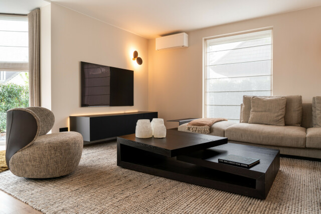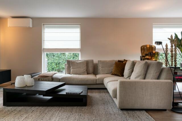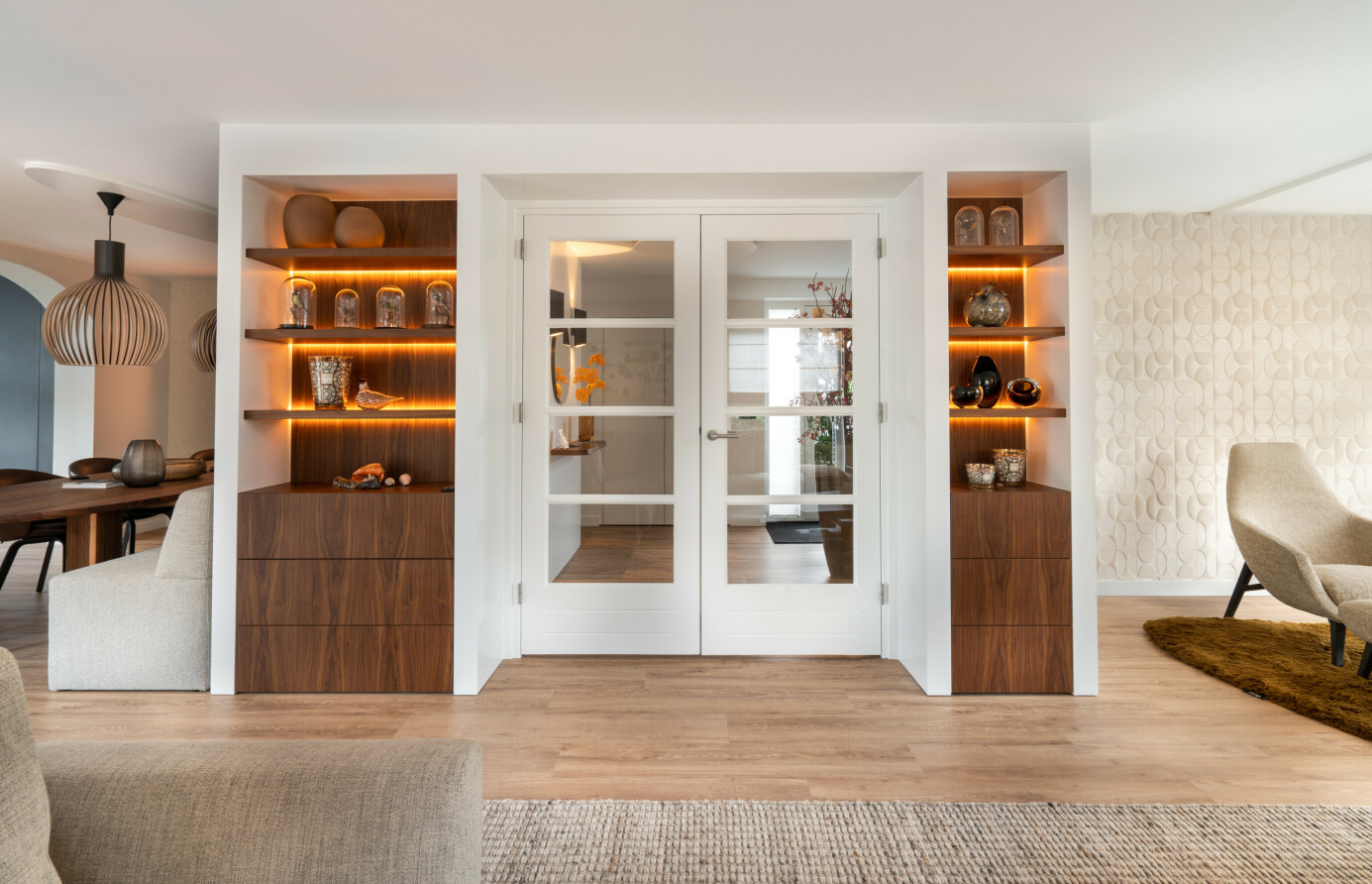 Kevin: ‘Omdat de radiatoren geen dienst meer deden werden ze verwijderd. Dat leverde extra ruimte op. Vervolgens gaven ze hun meubels weg – ze konden er een aantal kennissen blij mee maken - want ook het interieur mocht een compleet nieuwe draai krijgen. Samen met onze interieurarchitect Bernice bedacht ik een plan om structuur en rust aan te brengen.