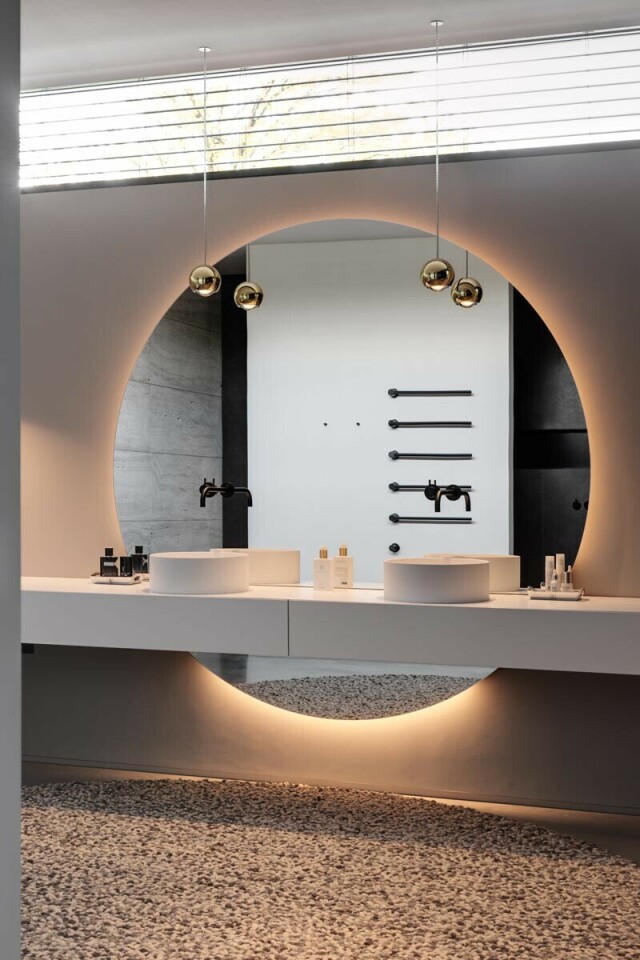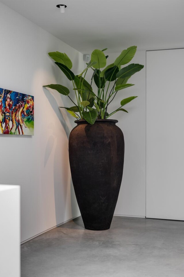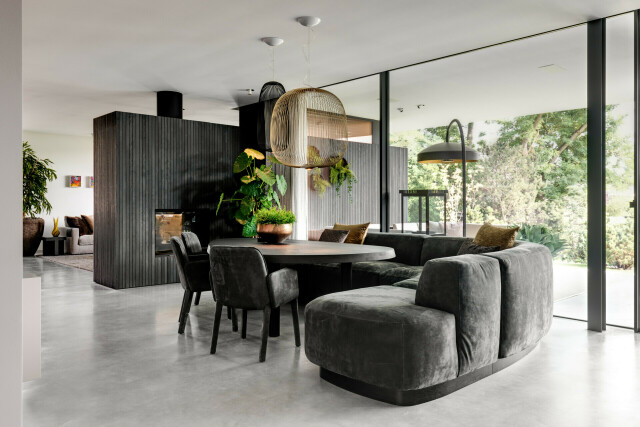 Marjon: ‘De woning werd in de jaren ’60 gebouwd voor een chirurg en onder architectuur getransformeerd tot een villa met twee royale etages, waarbij op de eerste etage alle leefruimtes gesitueerd werden. Dankzij de grote raampartijen is er een prachtig zicht op de buitenruimte! In nauwe samenwerking met de bewoners gingen we voor een stoere, licht industriële sfeer.’