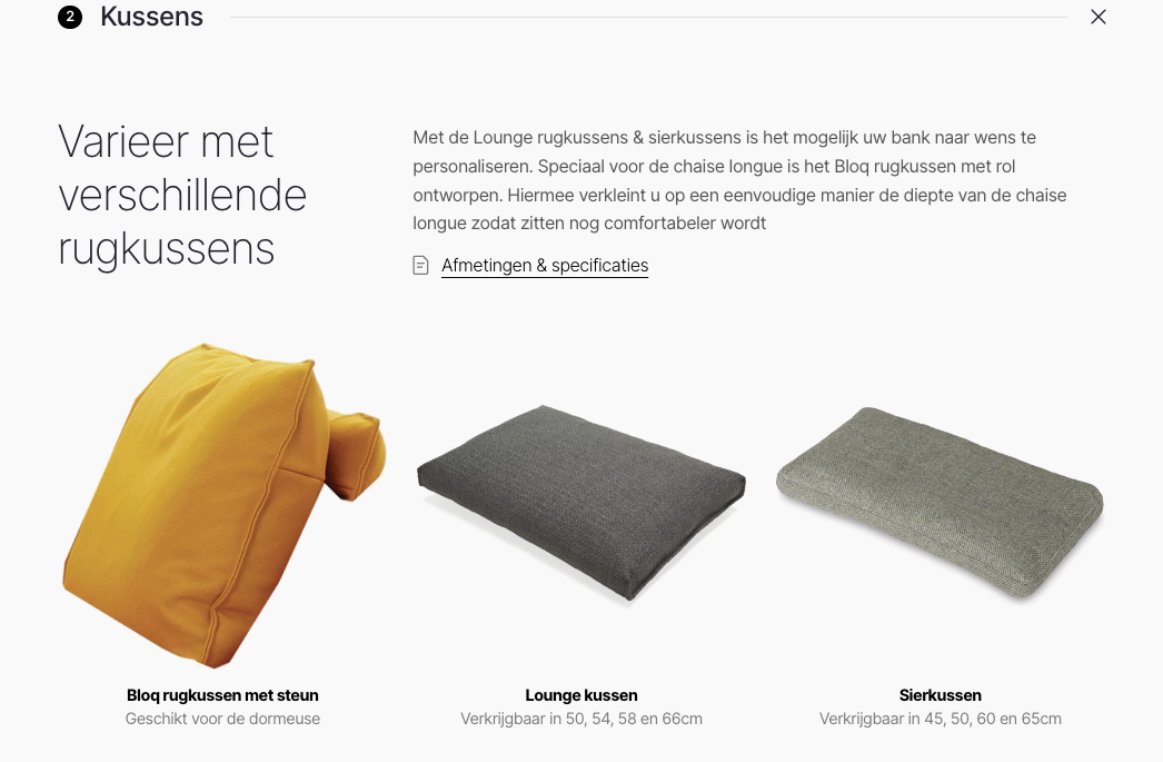 Bloq is een minimalistische bank met maximale details, strak aan de buitenkant en comfortabel aan de binnenkant. Het unieke ontwerp bevat verrassende details die Bloq haar karakteristieke uitstraling geven. De speciaal ontwikkelde, gepolijste aluminium poot benadrukt zowel de robuuste als verfijnde kant van de bank. Bloq is een modulaire bank die volledig naar wens kan worden samengesteld. Met verschillende elementen in diverse afmetingen kunt u de bank configureren zoals u dat wilt. Dankzij de vlakke zitting kunnen alle elementen naadloos aan elkaar worden gekoppeld. Met de optionele Lounge rugkussens en sierkussens kunt u de bank verder personaliseren. Voor de chaise longue is er een speciaal Bloq rugkussen met rol beschikbaar, waarmee de diepte eenvoudig kan worden aangepast voor extra comfort. De bekleding speelt een cruciale rol in de uitstraling van uw meubel. Er zijn verschillende stof- en leersoorten geselecteerd die geschikt zijn voor diverse woonstijlen en toepassingen. Als laatste kunt u de kleur van de poten kiezen die bij de bekleding en uw interieur passen. Opties zijn onder andere een glanzende poot in Aluminium of Dark, of een matte variant in de kleuren Coal, Ivy of Onyx. De vanaf prijs is gebaseerd op de 1-arm 2,5 zits bank + dormeuse uitgevoerd in de stofsoort Soho.
