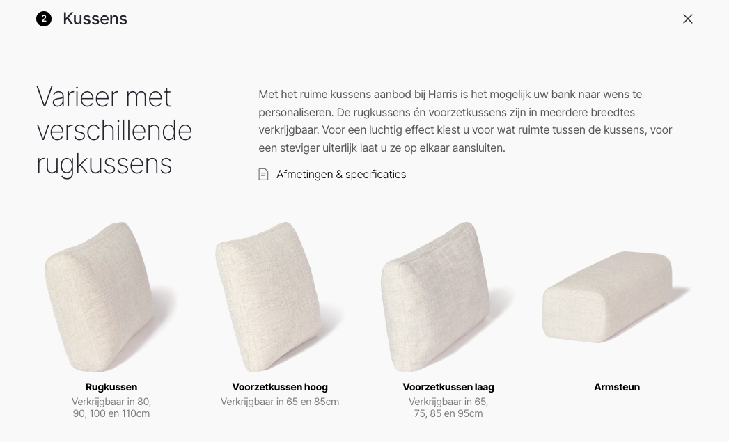 Harris is de ideale keuze voor wie op zoek is naar een bank om heerlijk in weg te zakken. Deze zachte, modulaire bank heeft een diepe zit en is uitgerust met een dubbele rij kussens in twee verschillende maten, zodat u uw perfecte lees- of relaxplek kunt creëren, helemaal afgestemd op uw voorkeuren. De strakke bekleding en symmetrische kussens zorgen ervoor dat Harris zijn klassieke en stijlvolle uitstraling behoudt, zelfs na lange avonden op de bank. Daarnaast zijn er verfijnde details die bijdragen aan de luxe uitstraling van Harris: de doorlopende gestikte naad die zichtbaar is in de onderregel, de stevige vorm door de onzichtbare poten, en de afgeronde hoeken die de moderne look versterken. Harris is een flexibele en luxueuze bank die perfect past in een eigentijds interieur. De vanaf prijs is gebaseerd op de 3-zits bank + 2x rugkussen 80 + 2x voorzetkussen laag 65 uitgevoerd in de stofgroep Soho.