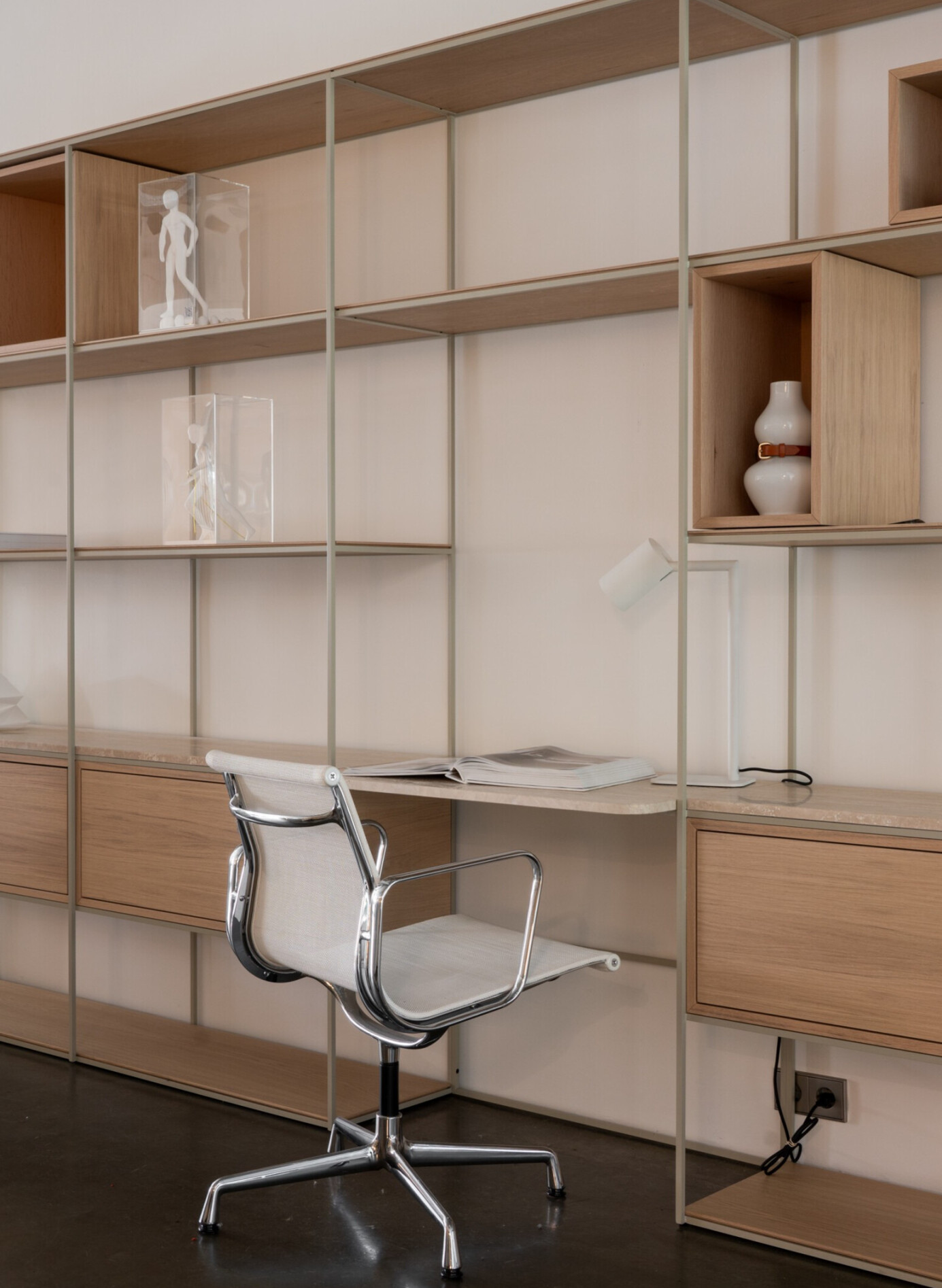 Voeg een speels tintje toe aan je open kast door bijvoorbeeld een Gubi Multilite oplaadbare tafellamp te plaatsen. Perfect als er geen stopcontact in de buurt is. Een tafellamp geeft niet alleen extra licht, maar voegt ook een vleugje modern design toe.