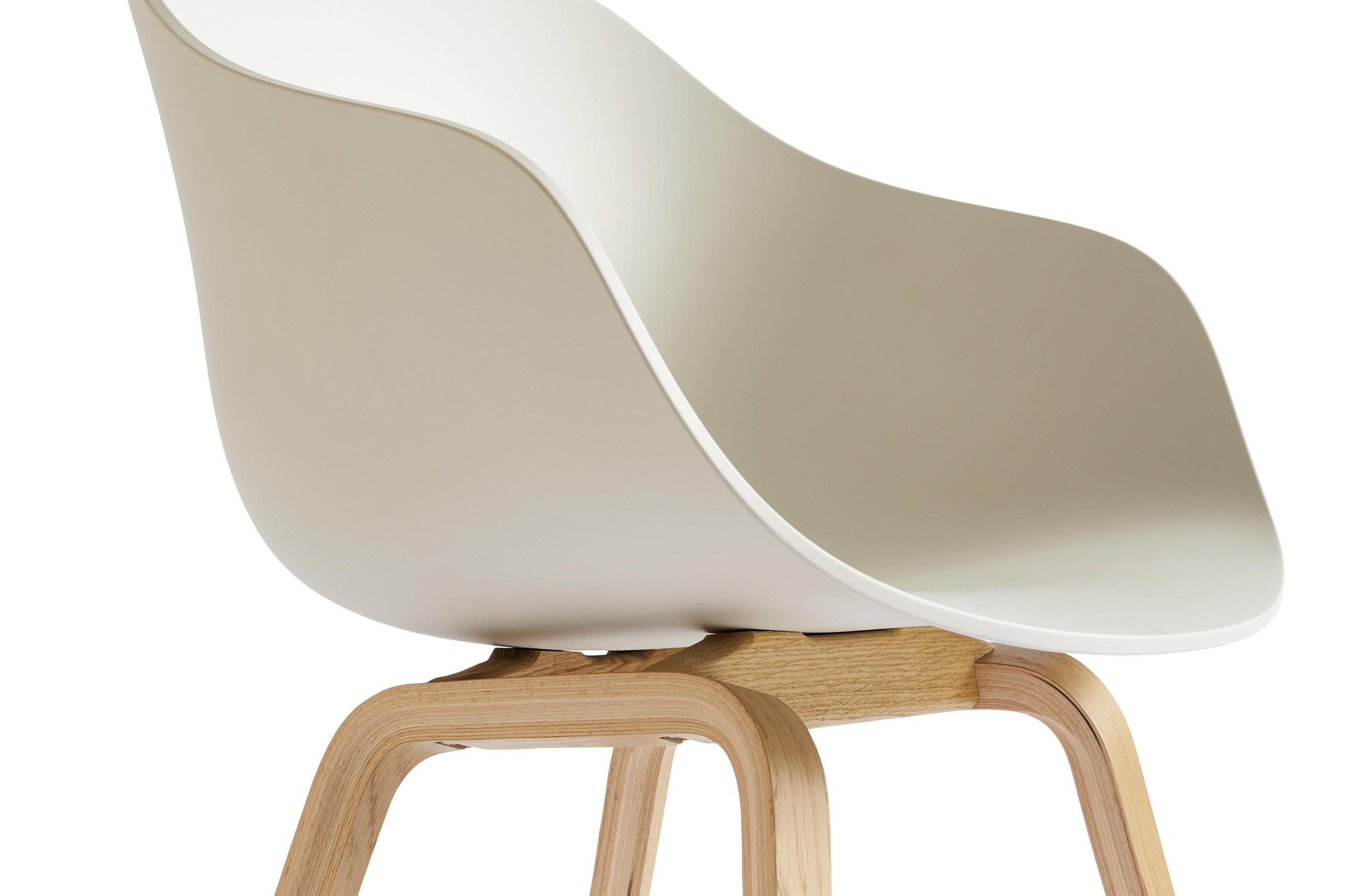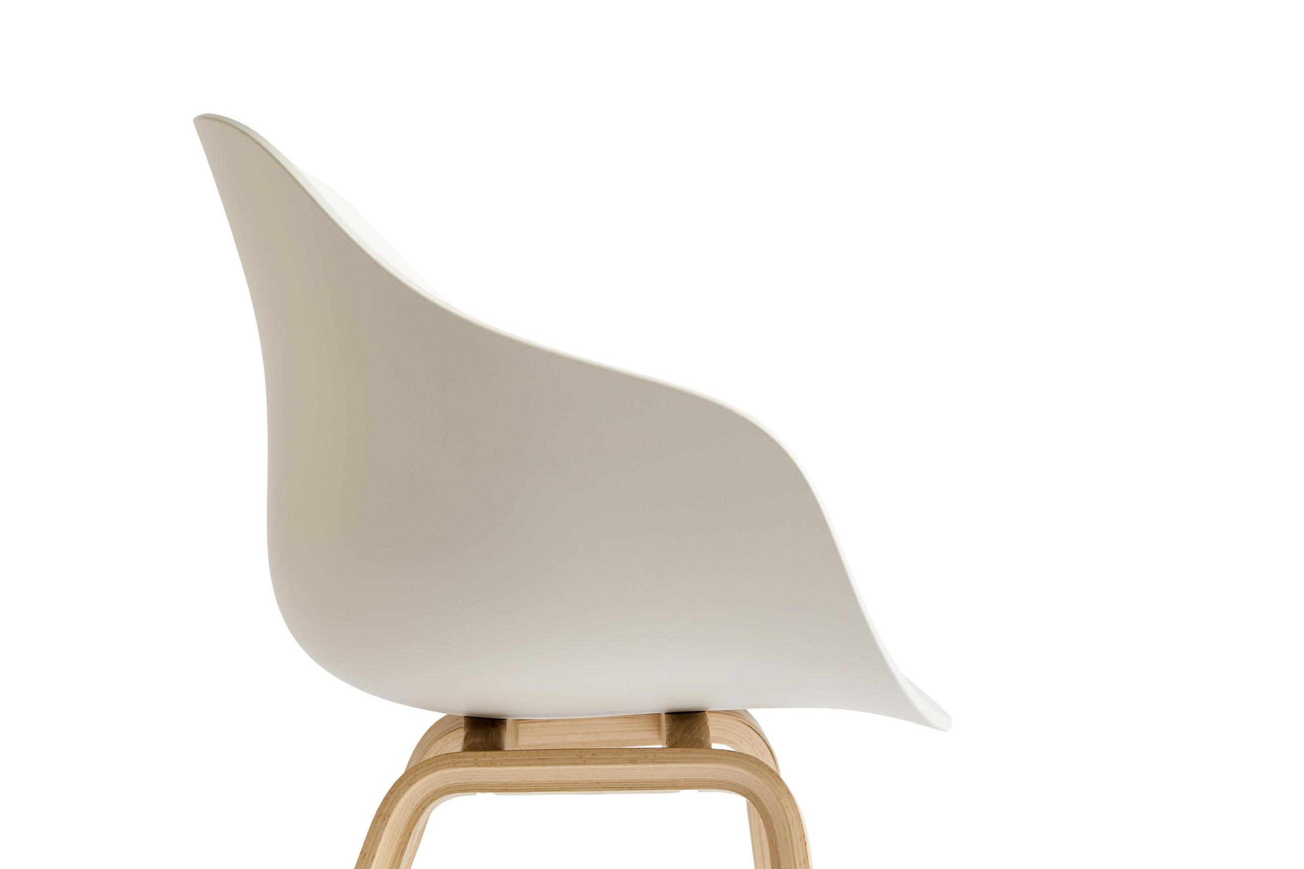 De About A Chair AAC 22 straalt de functionele eenvoud uit die kenmerkend is voor de hele collectie. De stevige kuip heeft een gebogen rugleuning met armleuningen, wat zorgt voor uitstekend comfort en een zachte, uniforme uitstraling. Het vierpotige houten onderstel voegt een tijdloze, klassieke expressie toe, wat zorgt voor meer stabiliteit en een langere levensduur. Het houten onderstel is beschikbaar in verschillende afwerkingen. De kuip, gemaakt van post-consumer gerecycled plastic, is verkrijgbaar in een breed palet van eigentijdse kleuren, met meerdere opties voor bekleding aan de voorkant of een vaste zitting. Dankzij de vele varianten en designcombinaties heeft deze serie een veelzijdige uitstraling, waardoor de stoel geschikt is voor diverse zakelijke, privé en openbare omgevingen.