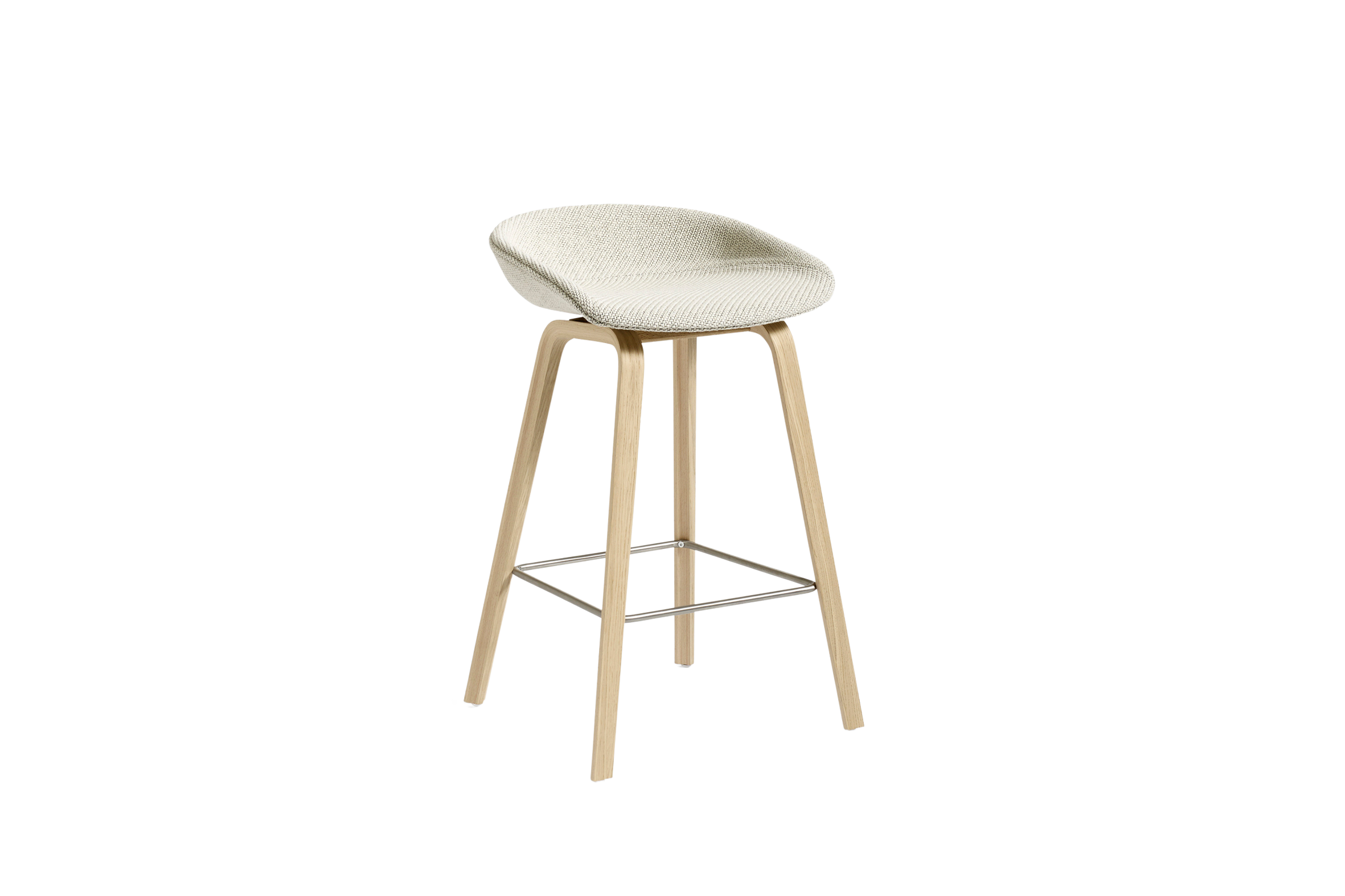 De About A Stool AAS 38 heeft een gebogen rugleuning en een elegant afgerond metalen frame, wat zorgt voor een industriële uitstraling, terwijl het dezelfde veelzijdige vormgeving behoudt als de andere ontwerpen in de collectie. De zitting, gemaakt van gerecycled plastic, is verkrijgbaar in een breed palet van eigentijdse kleuren en met verschillende opties voor bekleding aan de voorkant. Het sledeonderstel is beschikbaar in twee hoogtes en verschillende stalen afwerkingen. Dankzij het eenvoudige, maar krachtige ontwerp is de serie ideaal als barkruk in diverse zakelijke, openbare en privéomgevingen. Uitgevoerd in "waterbased oak veneer, coda 100"