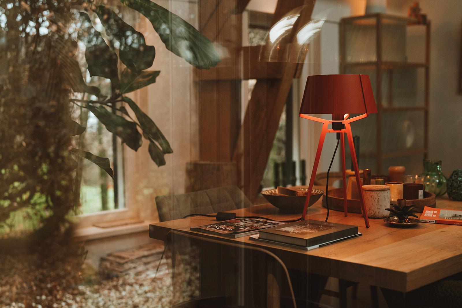 De Tonone Bella doet haar naam graag eer aan: het is een echte bella. Met drie poten, een volledig gesloten lampenkap en slechts één schroef, heeft de tafellamp een functioneel ontwerp. Dankzij de materiaalkeuze – gepoedercoat staal – is de Bella sterk. In haar uiterlijk én haar constructie.De kracht van het design zit in wat je ziet, maar ook in wat je niet ziet. Zo lopen de drie poten van Bella naadloos door richting de lampenkap. Hier vormen ze de ribben van het geheel. In deze ribben zit een sleuf, waar je de losse platen in klikt. De fitting is het enige onderdeel dat vastzit met een schroef. Deze zit subtiel verborgen onder een afdekkapje. Als tafellamp doet Bella het goed in vrijwel elk interieur: als moderne touch in een klassieke woning, als minimalist in een Scandinavische woonstijl of als kleurrijke toevoeging in een industrieel geheel. De Tonone Bella-serie is verkrijgbaar in 11 kleuren: Ice Blue (ijsblauw), Smokey Black (zwart), Flux Green (groen), Pure White (wit), Ash Grey (lichtgrijs), Midnight Grey (donkergrijs), Lightning White (crèmewit), Striking Orange (oranje), Thunder Blue (blauw), Daybreak Rose (roze) en Sunny Yellow (geel). Om het design helemaal naar je hand te zetten, krijg je nog een extra keuze: die voor de kleur van de fitting. De fitting van de Bella-lamp komt namelijk in de varianten messing en zwart. Zwart is klassiek en tijdloos, en past bij elke kleur. Messing is gewaagder maar combineert net zo makkelijk.