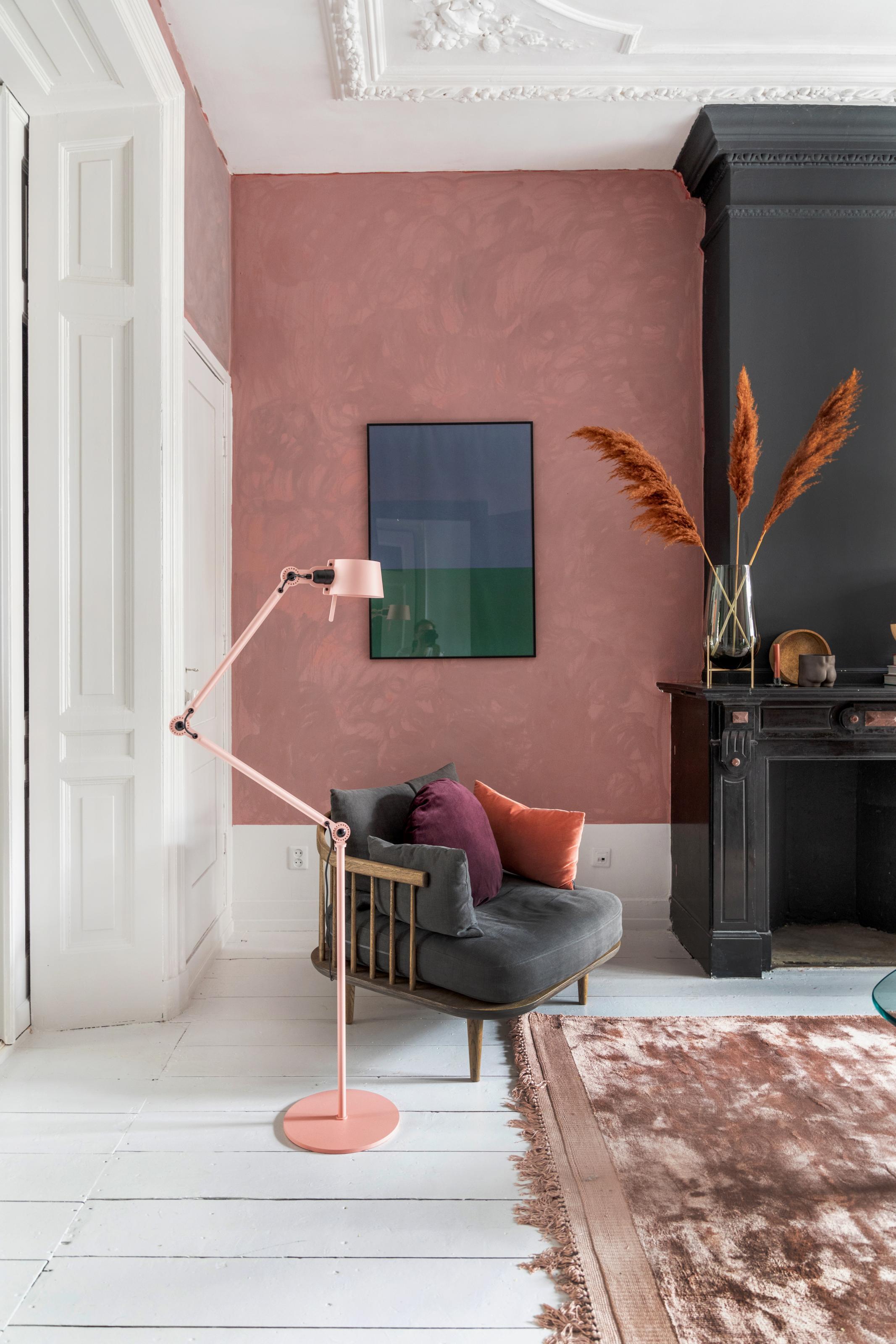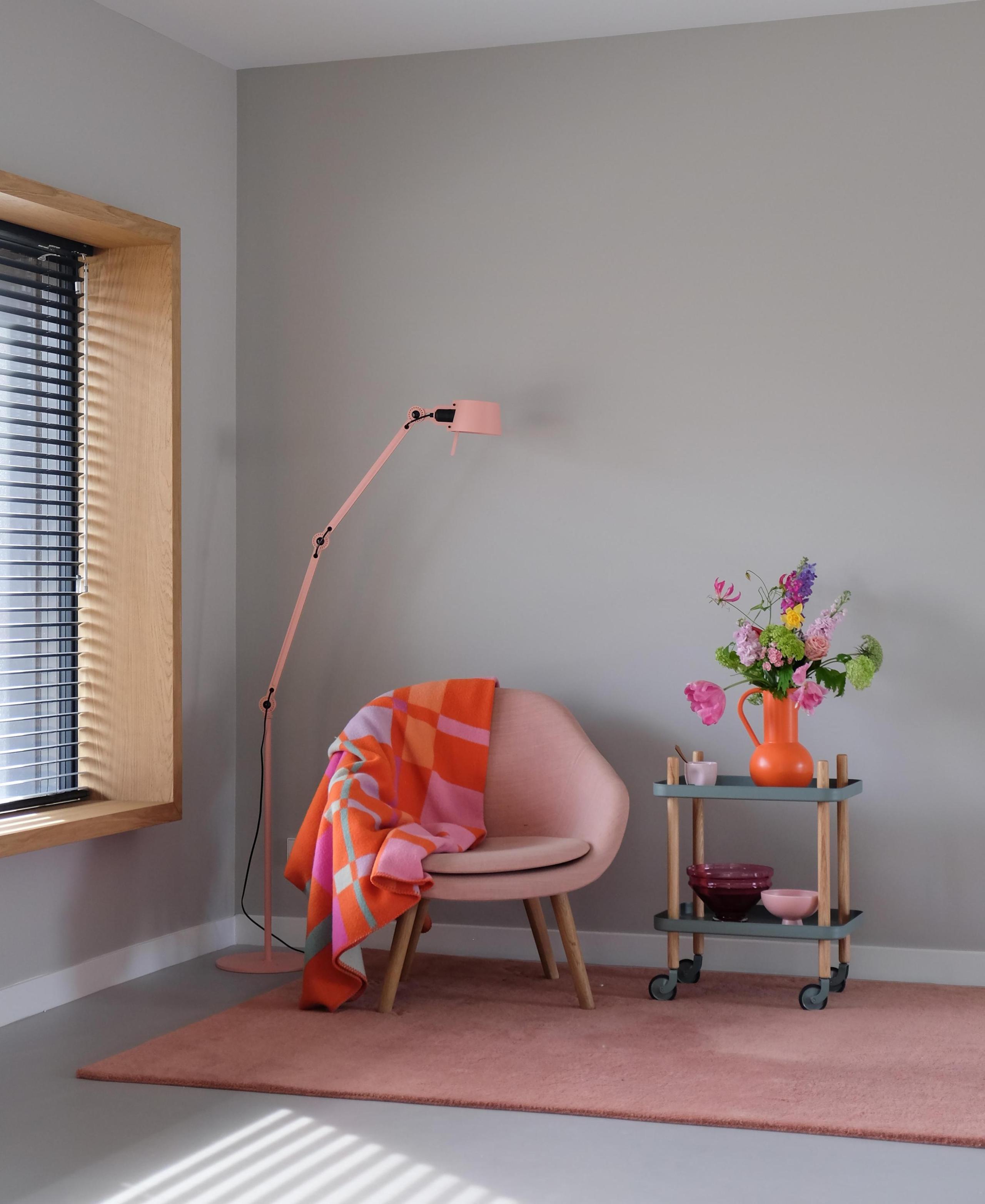 De Tonone Bolt Floor 2 arm is een vloerlamp naar een ontwerp van Anton de Groof. Hij maakt deel uit van de stoere industriële lampenserie BOLT die herkenbaar is aan functionaliteit in vorm, strakke lijnen en aan de iconische hoofdrol voor de vleugelmoer. De Bolt serie is verkrijgbaar in 29 modellen. De vloerlamp kenmerkt zich door twee verstelbare armen in gepoedercoat staal en kap in gepoedercoat aluminium. De open kap zorgt voor een mooie verspreiding van het licht. De vloerlamp is op 3 plaatsen verstelbaar met de wingnut. De vleugelmoer oftewel de wingnut in massief messing wordt meegeleverd. Behalve dat het een functioneel hulpmiddel is, is de wingnut geïntegreerd in het ontwerp van de lamp en zelfs een onderscheidend visueel element. Tonone Bolt serie is verkrijgbaar in 11 kleuren: Smokey Black (zwart), Flux Green (groen), Pure White (wit), Ash Grey (lichtgrijs), Midnight Grey (donkergrijs), Lightning White (crèmewit), Striking Orange (oranje), Thunder Blue (blauw), Daybreak Rose (roze), Sunny Yellow (geel) en Ice Blue (ijsblauw).