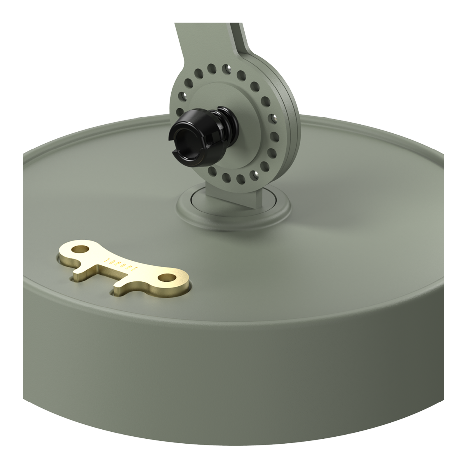 De Tonone Bolt Desk 2 arm is een ontwerp van Anton de Groof. De stoere industriële lampenserie BOLT is herkenbaar aan functionaliteit in vorm, strakke lijnen en aan de iconische hoofdrol voor de vleugelmoer. De Bolt serie is verkrijgbaar in 29 modellen. De bureaulamp kenmerkt zich door de twee verstelbare armen in gepoedercoat staal en een open kap uitgevoerd in gepoedercoat aluminium. De vleugelmoer oftewel de wingnut in massief messing wordt meegeleverd om de scharnieren naar eigen wens op 3 plaatsen te verstellen. Behalve dat het een functioneel hulpmiddel is, is de wingnut geïntegreerd in het ontwerp van de lamp en vormt het daardoor een onderscheidend visueel element van de lamp. De lamp is draaibaar en heeft een zware voet. De bureaulamp is ook verkrijgbaar met klem. Tonone Bolt bureaulamp in 11 kleuren: Smokey Black (zwart), Flux Green (groen), Pure White (wit), Ash Grey (lichtgrijs), Midnight Grey (donkergrijs), Lightning White (cremewit), Striking Orange (oranje), Thunder Blue (blauw), Daybreak Rose (roze) Ice Blue (blauw) en Sunny Yellow (geel).