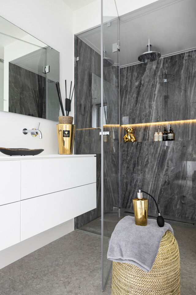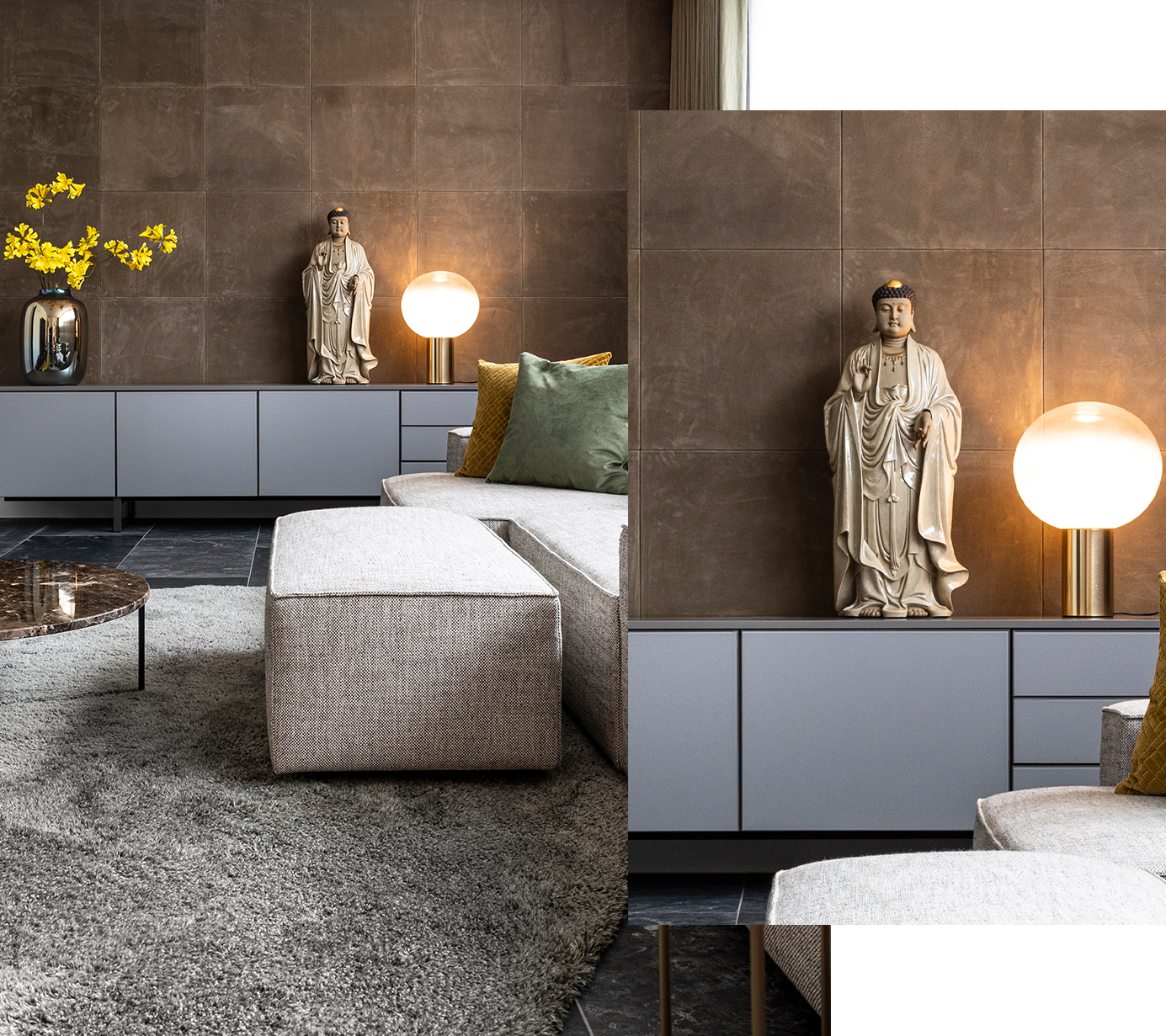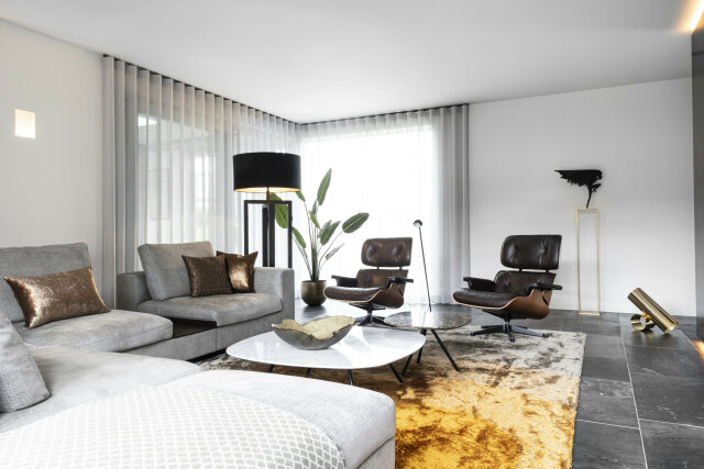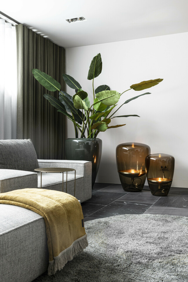 Gijs vertelt: ‘Onze ijkpunten waren de samenstelling van het gezin en hun oosterse oorsprong. Verder kregen we carte blanche.’ De architect ontwierp een ruime villa met voor iedereen een slaap- en badkamer. Daarnaast kwam er een chill-kelder, een royale garage en een guesthouse om onder meer familie uit Hongkong in te ontvangen. De samenwerking verliep voorspoedig. Gijs: ‘Wij kennen Frans, hij kent ons en we weten wat we aan elkaar hebben. Hij bedacht de L-vorm, waardoor de tuin een besloten karakter kreeg en koppelde de leefkeuken, eet- en zitkamer aan elkaar. Het is gaaf om te zien hoe zo’n prachtig pand langzaam maar zeker een eigen karakter krijgt.’